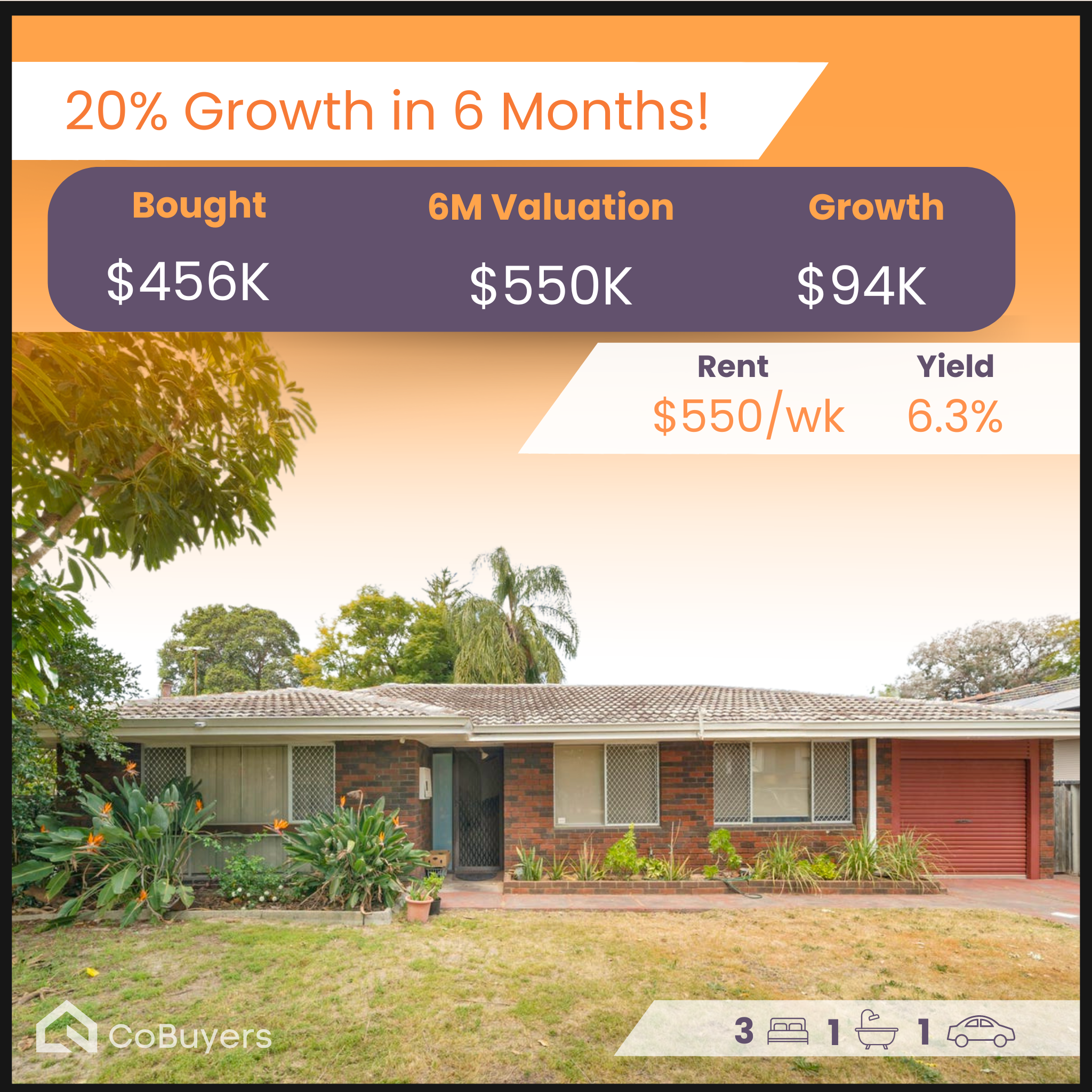 Sydney was the dream. Regional property was the strategy to get there. I identified the opportunity in Perth metro before the broader market caught on. Up $271K on a $512K purchase, with strong rental yield from day one.